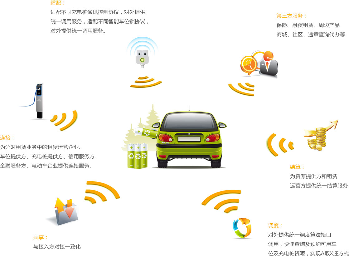 连接、适配、资源共享、节约社会资源,助力分时租赁行业快速发展。